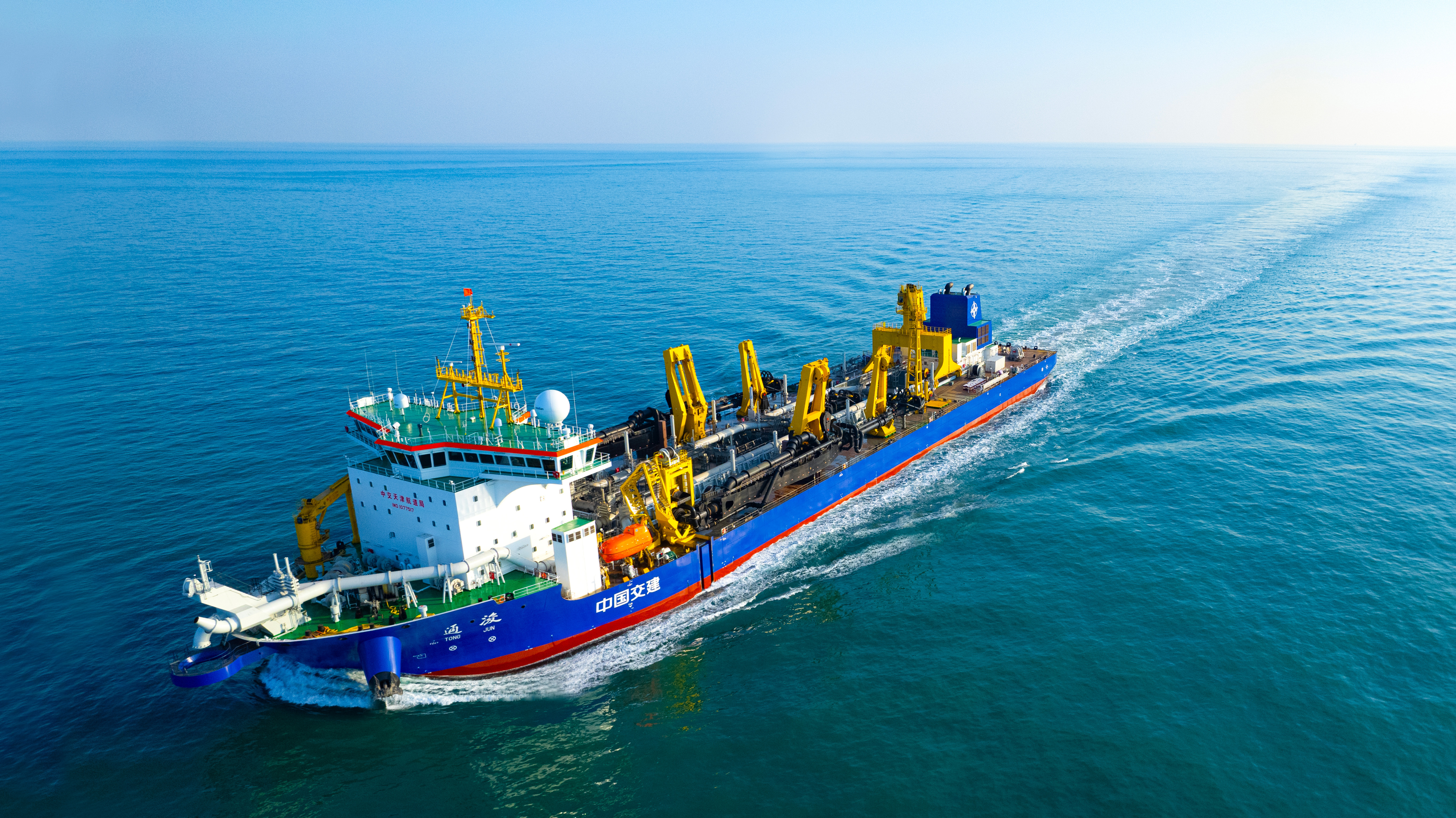 11月25日,我国自主设计建造的新一代超大型耙吸式挖泥船“通骏”号在江苏启东振华造船厂码头顺利完成黄海全部海试项目并顺利返航。本次海试的圆满成功,标志着这艘填补我国3.5万立方米以上耙吸式挖泥船空白的“国家重要利器”正式投产,将为我国海洋强国建设和共建“一带一路”项目的主力装备提供支撑。据了解,海试于11月21日正式开始,历时5天。开展了航行推进系统、疏浚疏浚系统、智能控制系统等一系列试验,围绕船舶主要性能,对30个主项、91个分项进行严格试验。温德在复杂海况下,“统军”号“智能、高效、多功能、环境友好”的先进特性得到充分证明,各项关键指标均达到或超过设计标准。 “通骏”号是我国第一艘自主设计建造的超大型耙吸式挖泥船,舱容35000立方米,最大舱容38168立方米,位居亚洲第一、世界第二。海试过程中,该船搭载的两台9000千瓦舱内泥浆泵表现出强劲性能,可实现12公里超长距离作业。单船疏浚量可填满5米高的一个标准足球场,充分证明了“破土强、运距远、开花距离长”的优异性能。